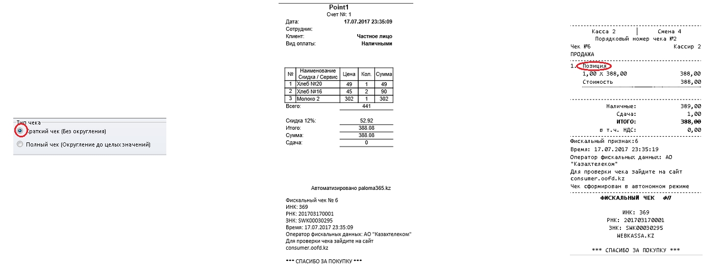 Рекомендуется использовать «Краткий чек», т.к. сервису WebKassa важна имена итоговая стоимость всех позиций в чеке, а не стоимости каждой позиции отдельно, и потери на округлении при таком варианте будут сведены к минимуму.